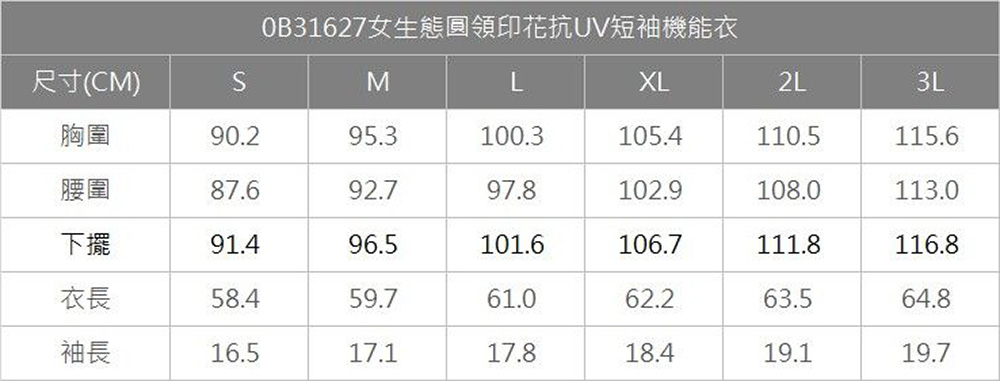女生態圓領印花抗UV短袖機能衣