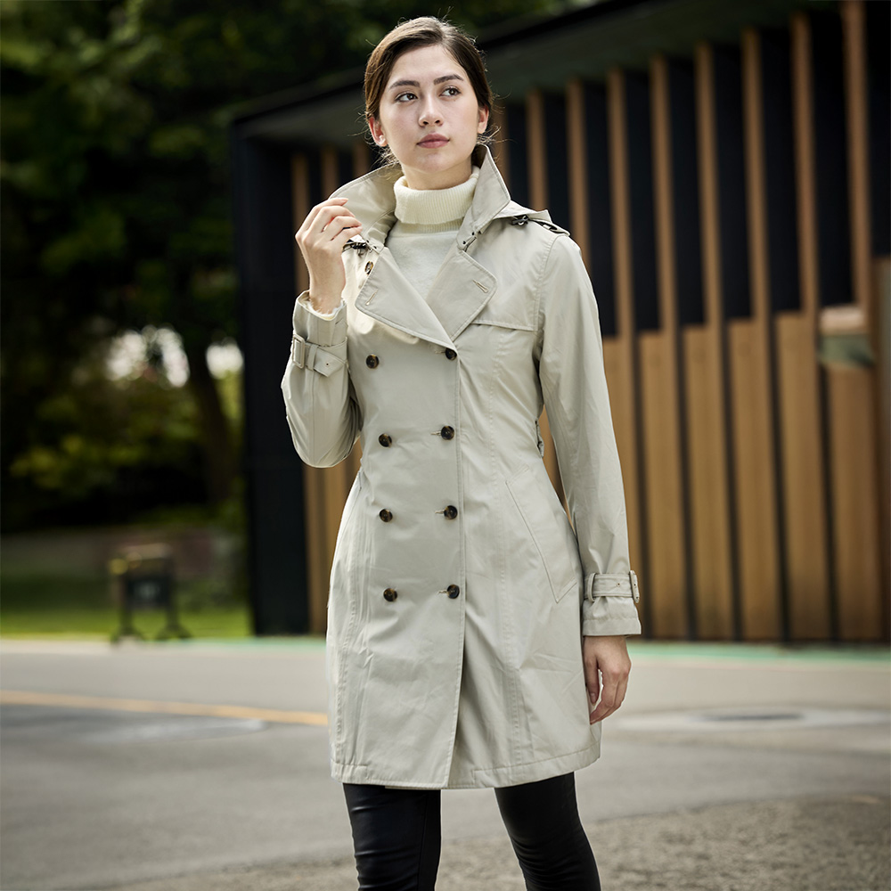 長版雙排釦,修身風衣設計,更顯都會時尚