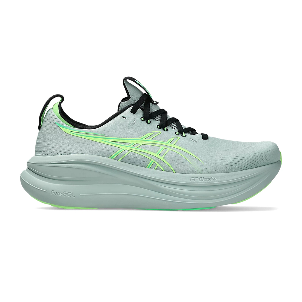 (男)【亞瑟士ASICS】NIMBUS 28 (2E) 寬楦緩衝慢跑鞋-綠 1011C144-400