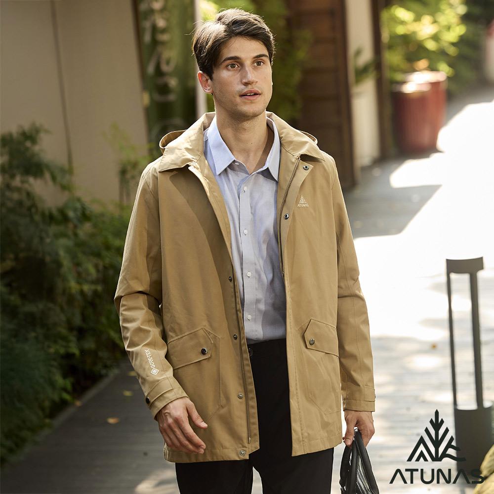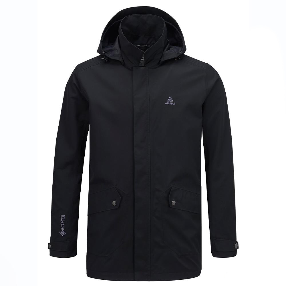 (男)【歐都納ATUNAS】GORE-TEX防水透氣+保暖羽絨二件式中長版風衣外套-黑 A1GT2513MB