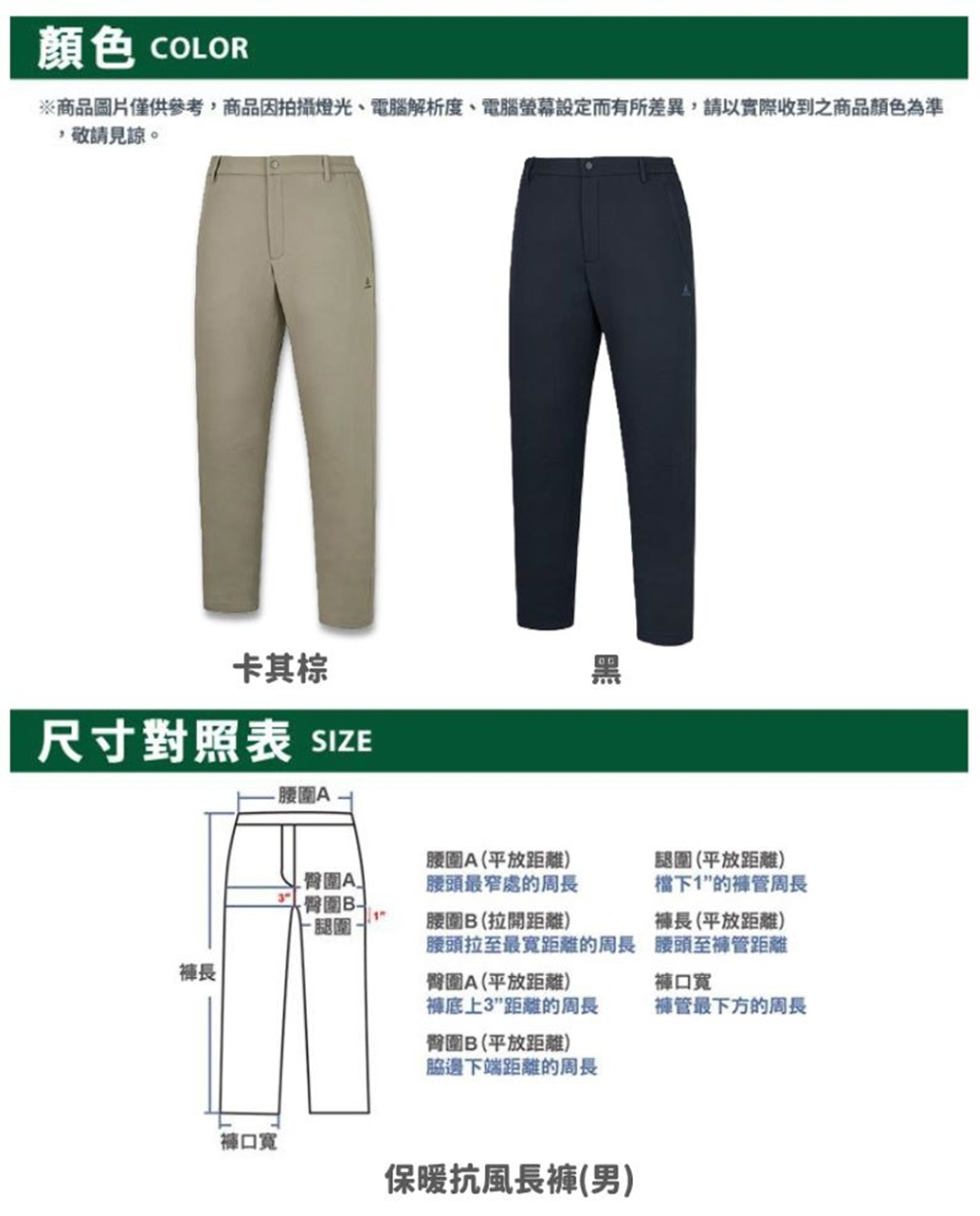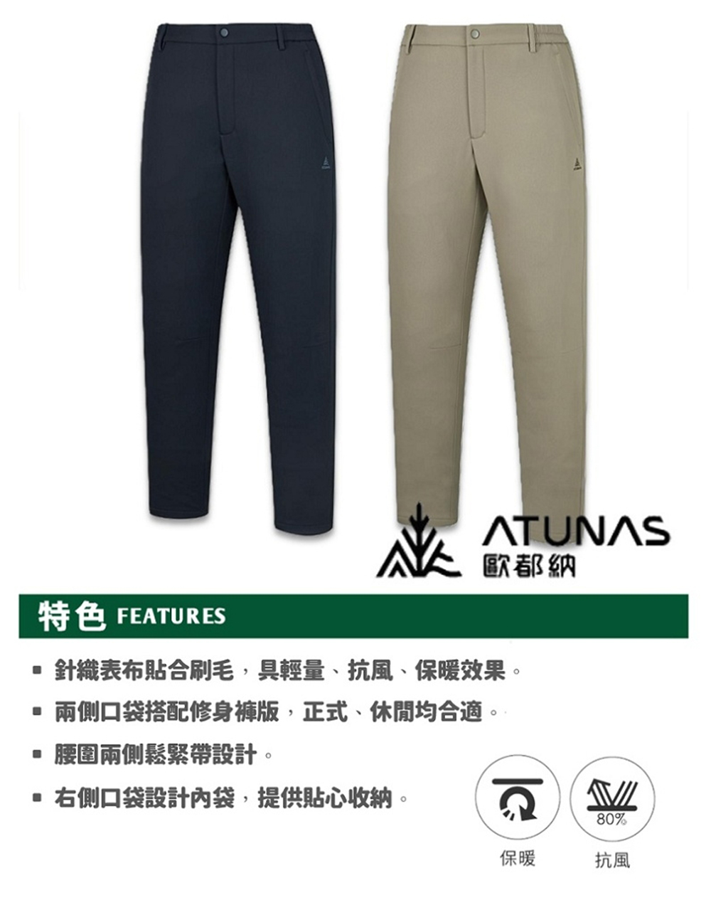 (男)【歐都納ATUNAS】抗風保暖長褲 -黑 A6PA2531MB