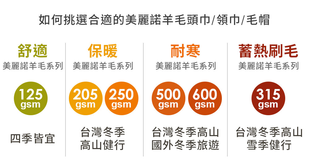 舒適系列,美麗諾羊毛克數為125g/m2,適合台灣四季