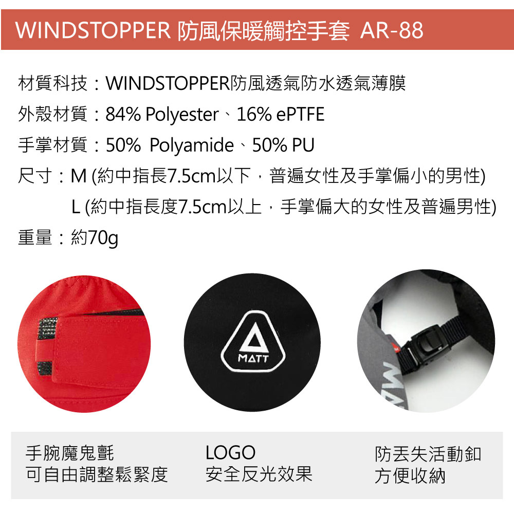 MATTAR-88軍規GORE-TEX(WINDSTOPPER)防寒風/防滑頂級三用專業保暖中薄型觸控手套