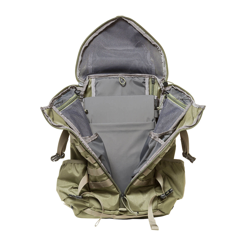 當大部分的背包裝滿時,會變成圓鼓鼓的形狀,在這種情況下,背包的肩背帶就無法維持該有的包覆弧度或是腰帶就無法提供該有的包覆性和支撐力。避免這種形況的解決方法是,選擇適合你身型且內置堅固框架的背包;或是調整物品擺放的位置,讓背包盡量符合你的身型,不過後者很難辦得到。因此Mystery Ranch就研發出了一個更具機能性與實用性的解決方案。