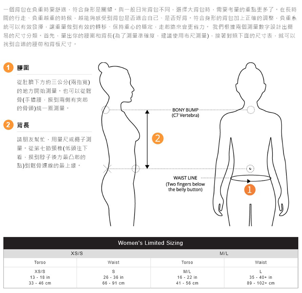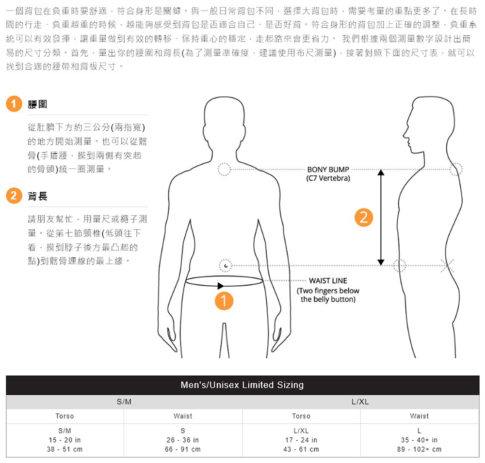 - 獨家設計的Futura Yoke(可調式背板)可以輕鬆的調節適合自己的背長,讓背包更符合你的身型