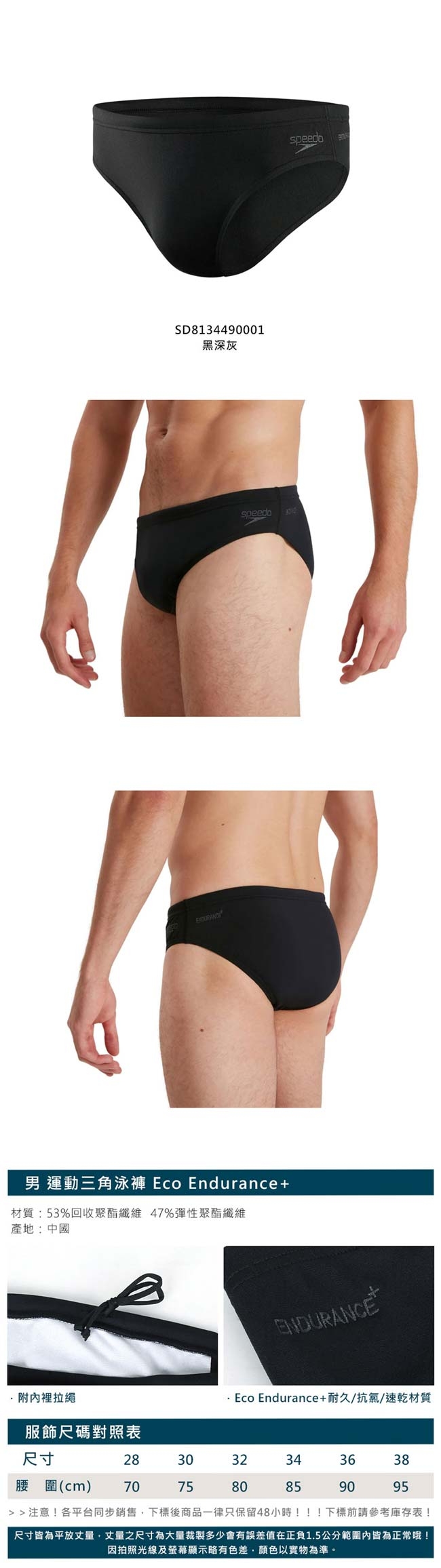 Speedo 男 運動三角泳褲 Eco Endurance+ 黑