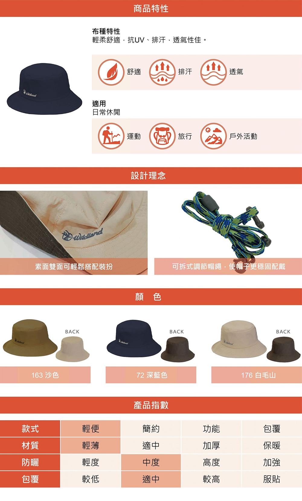 【Wildland 荒野】中性抗UV雙面漁夫帽-白毛山/栗松溫泉 wh1075-176/wh1075-177