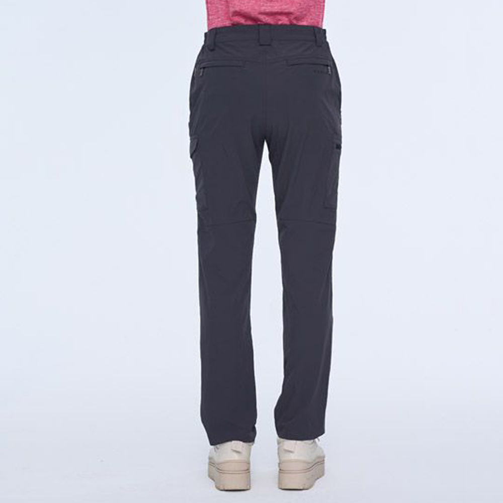 左.右側不對稱貼袋設計、前後剪接膝摺可增加膝蓋活動份量、後方雙邊拉鍊開袋設計