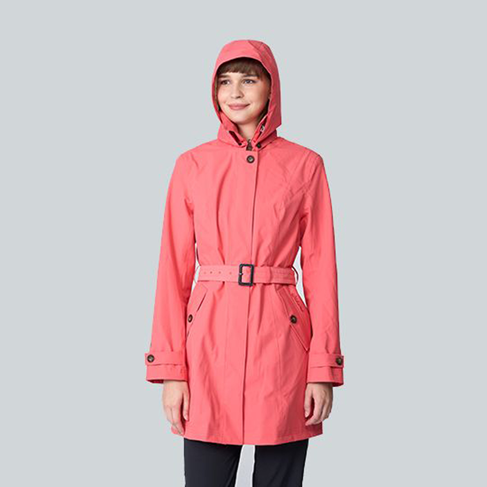產品特性 : 修身中長版;整件防水;可拆帽;縫釦袋蓋內插袋擋水條設計;袖口縫釦拌帶調節;領圍金屬鈎扣設計;附腰帶;右袖口鹿頭繡花設計