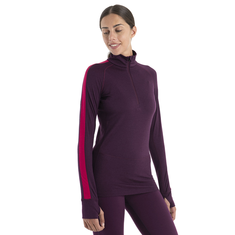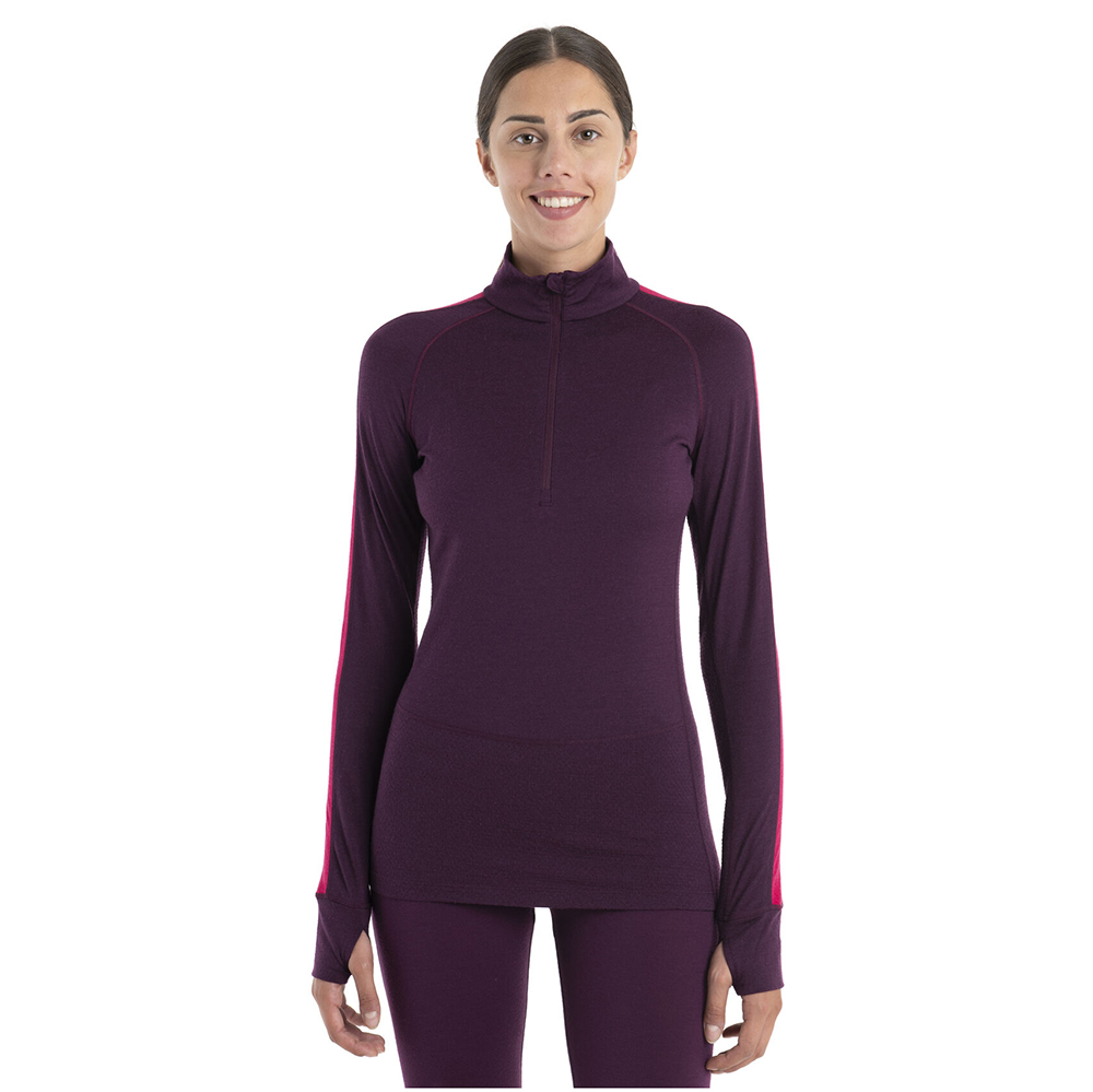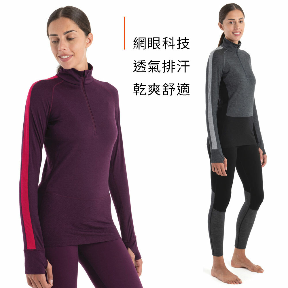 (女)【icebreaker】ZoneKnit 網眼透氣半開襟長袖上衣-BF200 深紫/桃紅 IB0A56HC-940