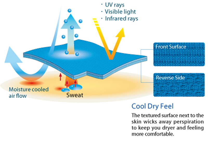 Wickron COOL是一種透氣,快乾的材料,用於適合在最溫暖的天氣中積極追求的服裝。