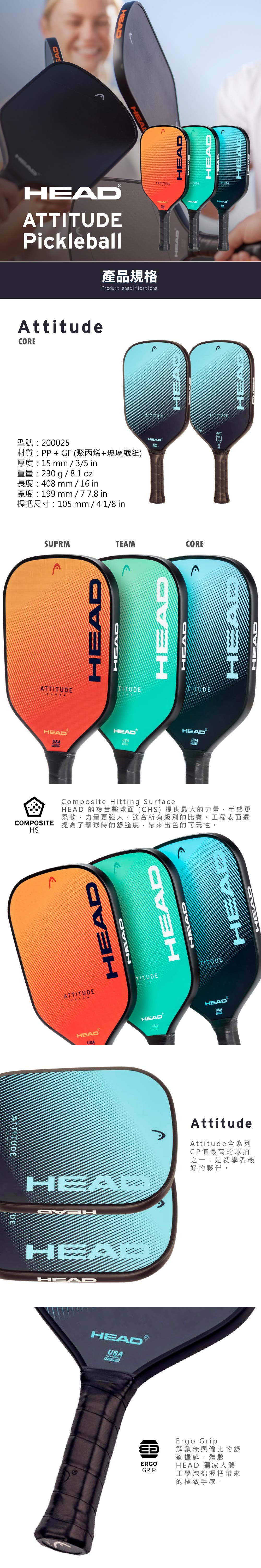 HEAD Attitude CORE 專為重視控球與精準度的初學者設計。其輕量化結構與符合人體工學的握把,兼具舒適感與準確性,是新手球員的絕佳選擇。