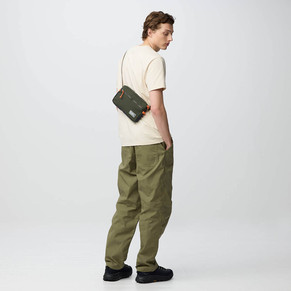 方便的橫式斜背袋,非常適合存放手機、錢包和護照。生產過程中絕無使用 PFAS。