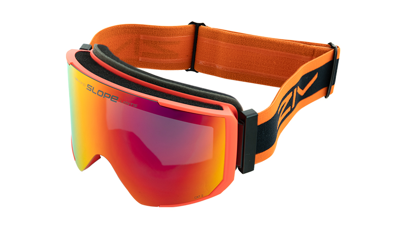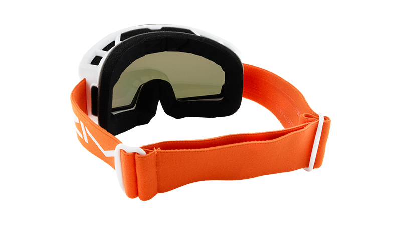 簡約線條的黑白鏡框,加上亮橘色寬面可調整彈性頭帶,可戴於安全帽或各式毛帽上,在雪地中輕鬆打造與眾不同的滑雪造型。