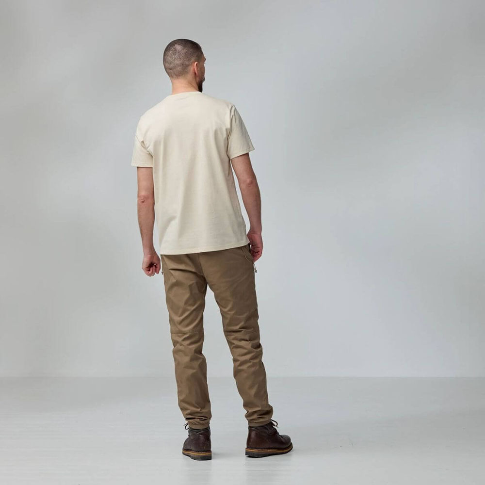 舒適的厚質平紋針織 T 恤,由有機棉製成。 柔軟耐穿。 圓領設計。 胸前印有品牌標誌。 寬鬆版型。商品描述經典男款短袖 T 恤,採用厚質單面平紋針織布料製成。100% 有機精梳棉材質提升柔軟和耐用度,而寬鬆剪裁是在較為溫暖月份進行輕鬆戶外活動的最愛。迷人的圓領設計,並在胸前印有 Fjällräven 品牌標誌。