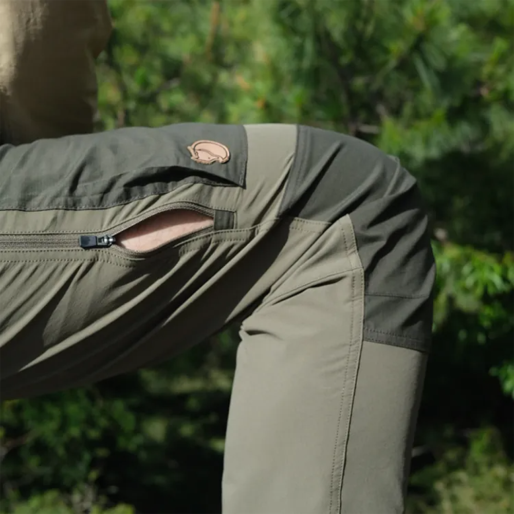 風格簡約,褲管自膝蓋以下縮窄,更顯俐落;大腿設有通風拉鍊可做散熱的調節; 褲腳壓扣兩段調整,打開有三角裁片,可按鞋子大小調整,亦可做通風用;大腿口袋、膝蓋和褲腳內側採用 G-1000® Lite Eco Stretch 做局部耐磨的加強,無懼崎嶇地形,經久耐用;背面則為全彈性布料,具備極佳的活動性,非常適合需要高靈活度和耐用性的戶外活動類型,春季到秋季皆適宜。