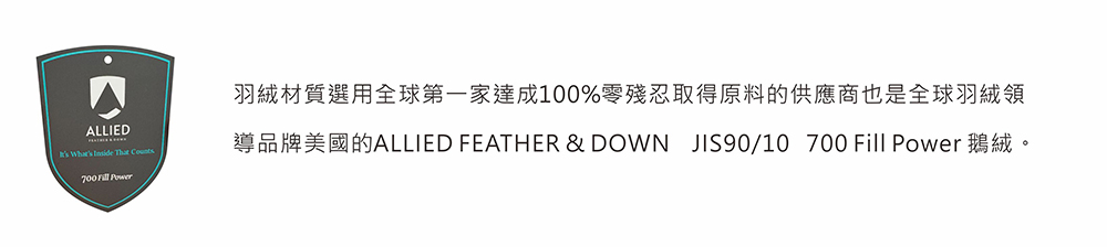 美國Allied Feather 700FP鵝絨JIS90/10