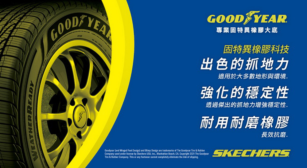 每雙 SKECHERS x GOODYEAR 的鞋款,都配置有保證固特異真品輪胎橡膠的GOODYEAR 雷射標籤吊牌。杜絕仿冒,請認明真品)。