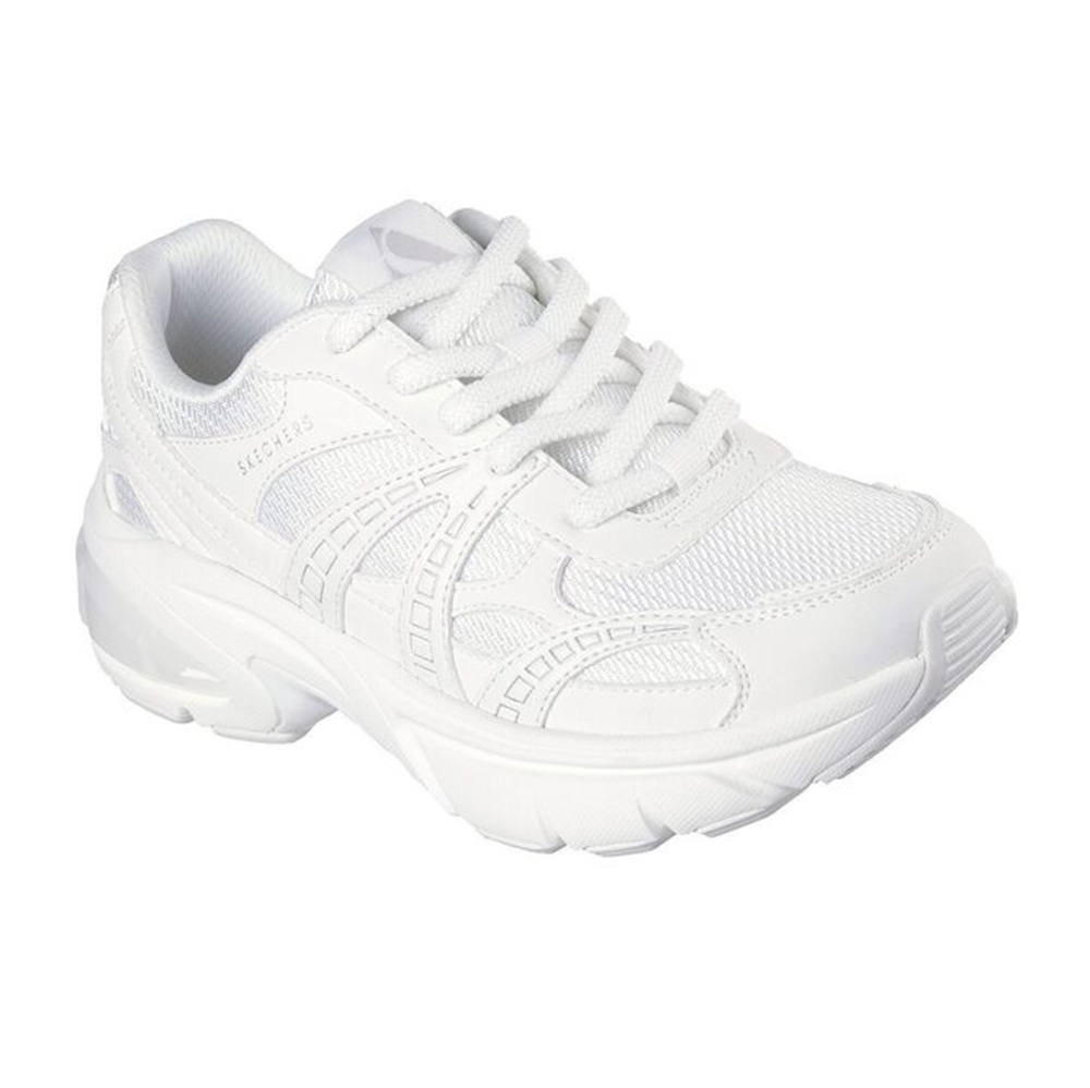 SKECHERS SHADOW 系列,復古運動鞋,以純色網布鞋面搭配造型皮面裁片,配備後跟果凍膠裝飾、TPU 足弓支撐片和橡膠大底,確保穩定性和舒適性,結合復古風格與現代創新,以 Y2K 時代的視覺美學為靈感,成為眾人矚目的焦點。