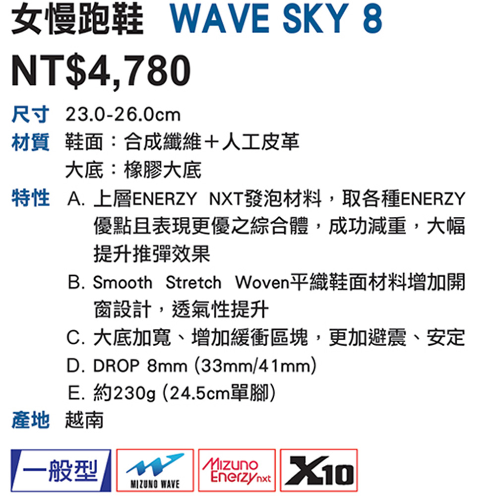 WAVE SKY 8 女慢跑鞋