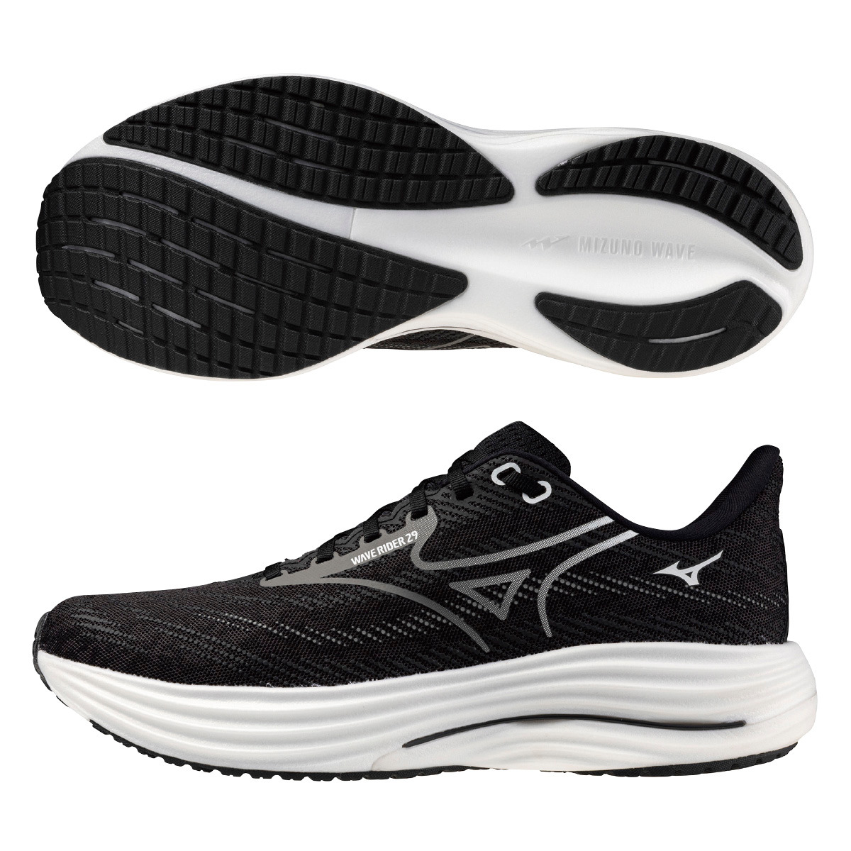 (男)【美津濃MIZUNO】WAVE RIDER 29 4E超寬楦慢跑鞋-黑白 J1GC250402